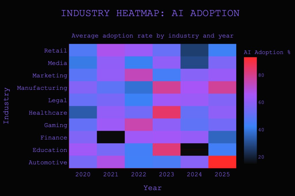 Dead Internet Theory predicts that the web will soon be predominantly AI-generated content and bot users. As we've seen already, the bots are already winning, and much of web traffic is already fraudulent. On top of it, aps and websites are already replacing human content with AI. On Instagram and TikTok, AI content already dominates according to many estimates, and may account for 70's of images posted. Instead of paying humans to create art, music, videos, and cat photos, we're spending enormous resources using machines to do it instead. This shift from human to bot users, and human to AI content, has convinced some people that the mainstream internet is already seriously ill, and on the way to dying. This data below, from Kaggle, helps illustrate the concept - although the data starts in 2020, which means we're leaving off 2019 and before, when the average rate was closer to 10% (or lower) and should be dark blue.